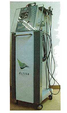 エアーブラシで、栄養剤を振りかけします。ナノテクノロジーで微細な粒子にして散布し、イオン棒で頭皮に浸透させます。